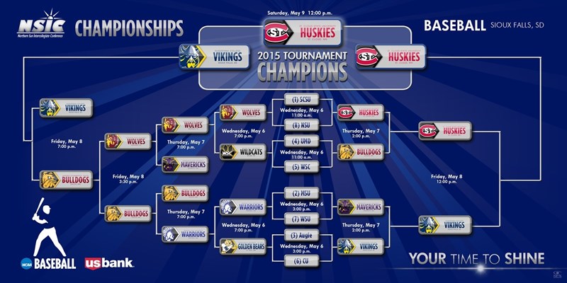 The 2015 NSIC/US Bank Baseball Tournament will take the top eight teams in the final NSIC Standings. The double elimination tournament takes place May 6-9 at Ronken Field & Sioux Falls Stadium in Sioux Falls, South Dakota.